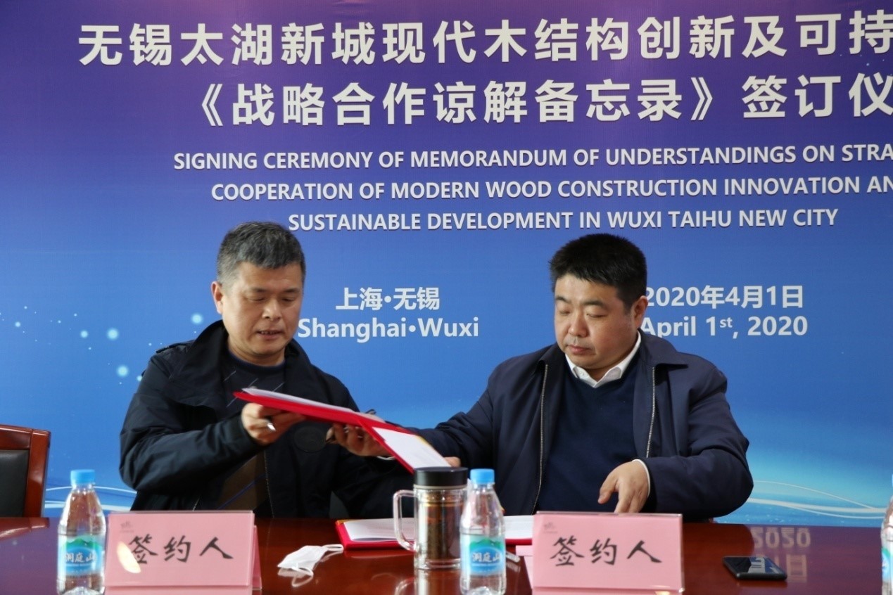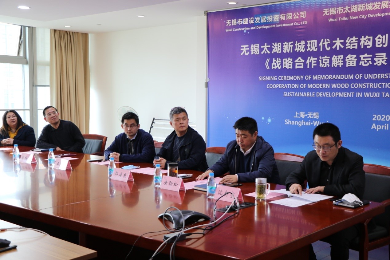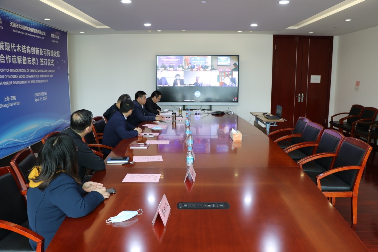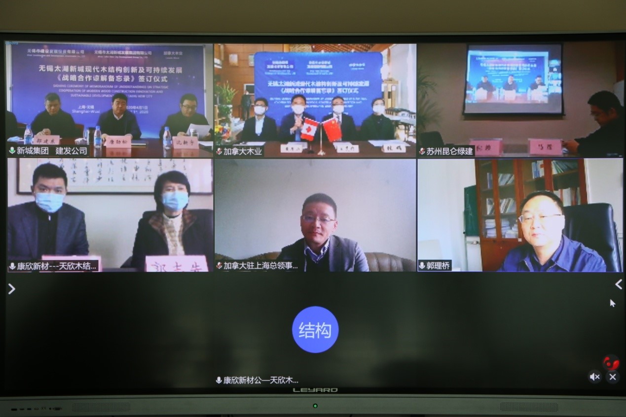4月1日下午,無錫太湖新城發(fā)展集團(tuán)、無錫建發(fā)公司、加拿大木業(yè)三方,通過視頻會(huì)議的形式,共同簽署了《戰(zhàn)略合作諒解備忘錄》,進(jìn)一步推動(dòng)現(xiàn)代木結(jié)構(gòu)建筑在太湖新城建設(shè)項(xiàng)目中的實(shí)踐及應(yīng)用。國家住房和城鄉(xiāng)建設(shè)部標(biāo)準(zhǔn)定額司郭理橋副司長及加拿大駐滬總領(lǐng)館、業(yè)內(nèi)相關(guān)單位負(fù)責(zé)人等參會(huì)鑒簽。